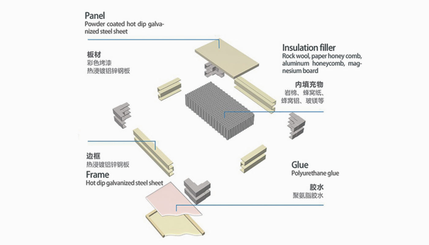 采用優(yōu)質(zhì)不銹鋼為面層,以巖棉,玻鎂巖棉,玻鎂,硅酸鋁,聚氨酯,鋁(紙)蜂窩等材料為芯層,以龍骨為支撐......